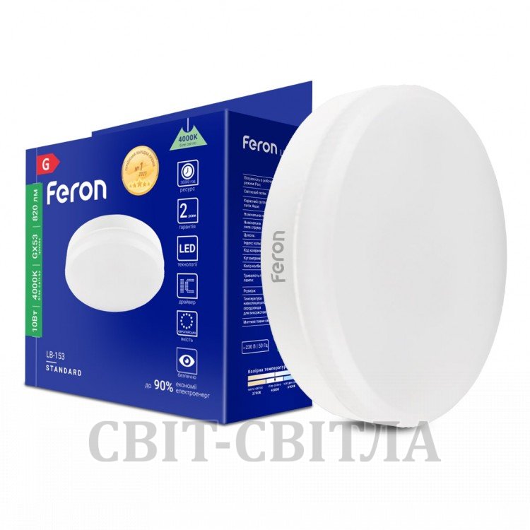 Світлодіодна лампа Feron LB-153 10Вт GX53 4000K, вітрина