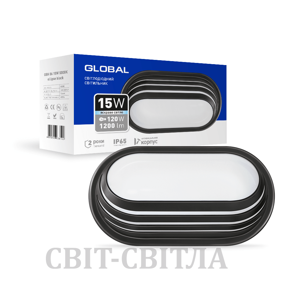 Антивандальний LED-світильник GLOBAL 1-GBH-06-1550-E 15W 5000K