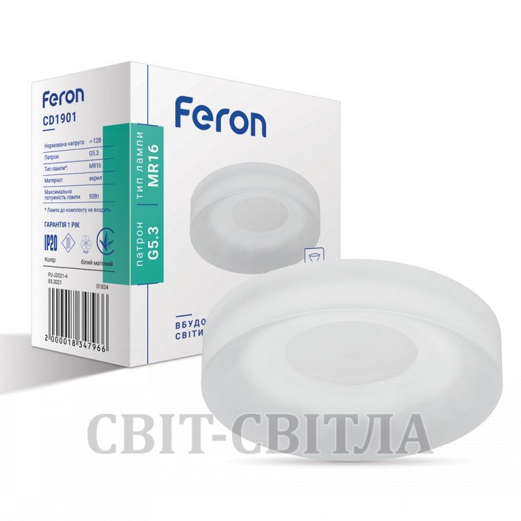 точковий світильник Feron CD1901 MR16 коло білий матовий