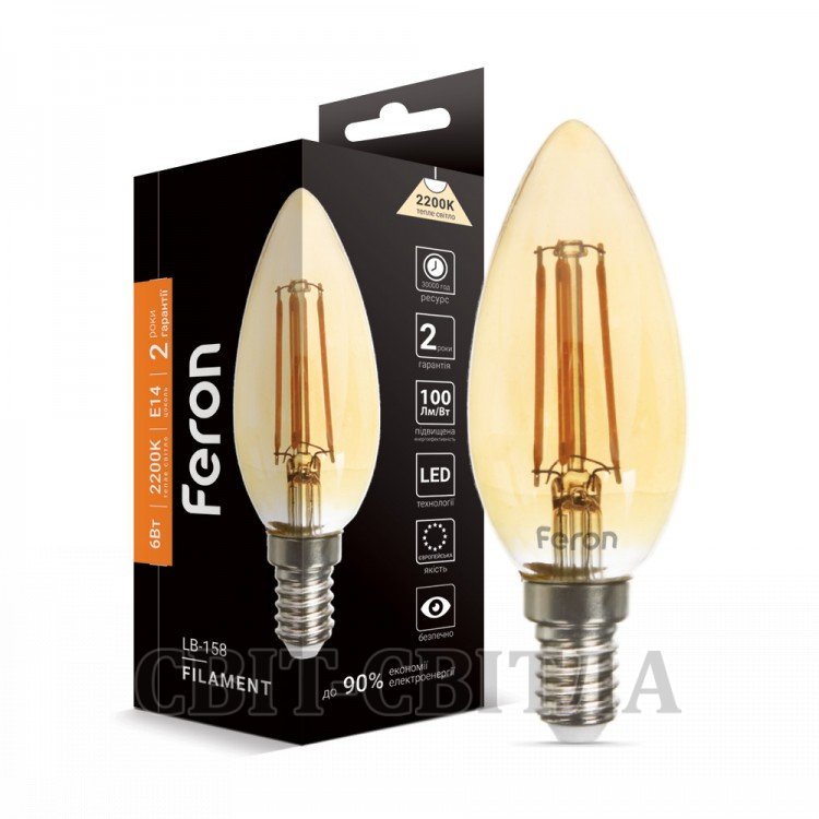 лампа Feron LB-158 C37 золото 230V 6W 600Lm E14 2200K, вітрина