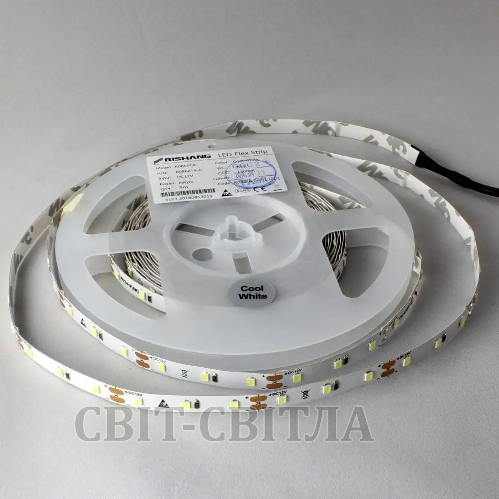 LED стрічка R0860TA-C, 14700-19700K, 6W, 2835, 60 шт, IP33, 12V, 420LM