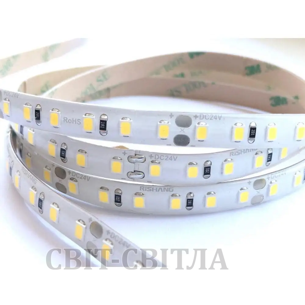 Кут розсіювання становить 115°. Температура світла – 3000K. Використовуються світлодіоди SMD 2835. Світлоефективність більше 100 lm / Вт. Матеріал підкладки – катана мідь. Клеюча поверхня оригінального виробництва 3М. Коефіцієнт пульсації – 0%. Важливо відзначити, що ця стрічка відповідає заявленим характеристикам, протестована в лабораторних та побутових умовах.