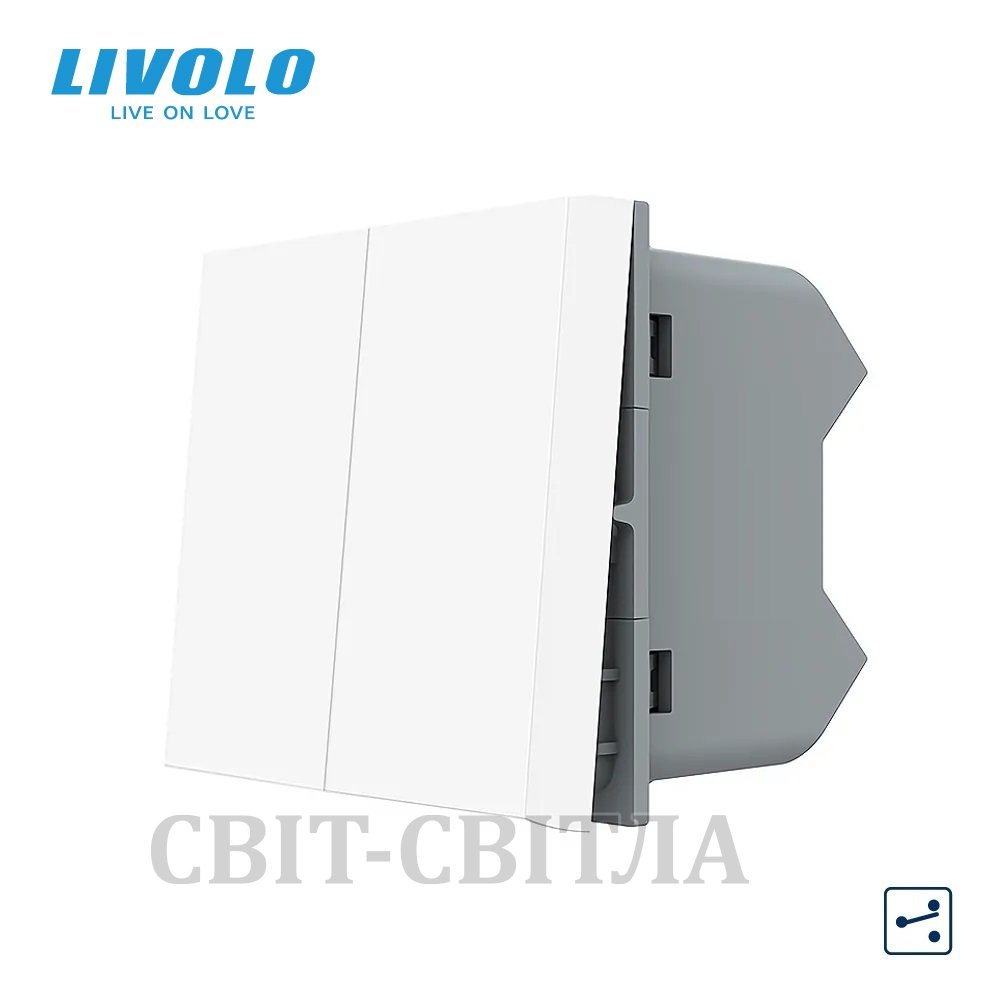 Механізм двоклавішний прохідний вимикач Livolo білий (VL-FCMKS-1WP)