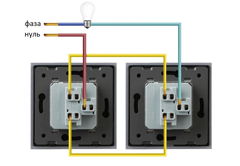 Прохідний вимикач підключається за спеціальною схемою у парі з іншим прохідним вимикачем.