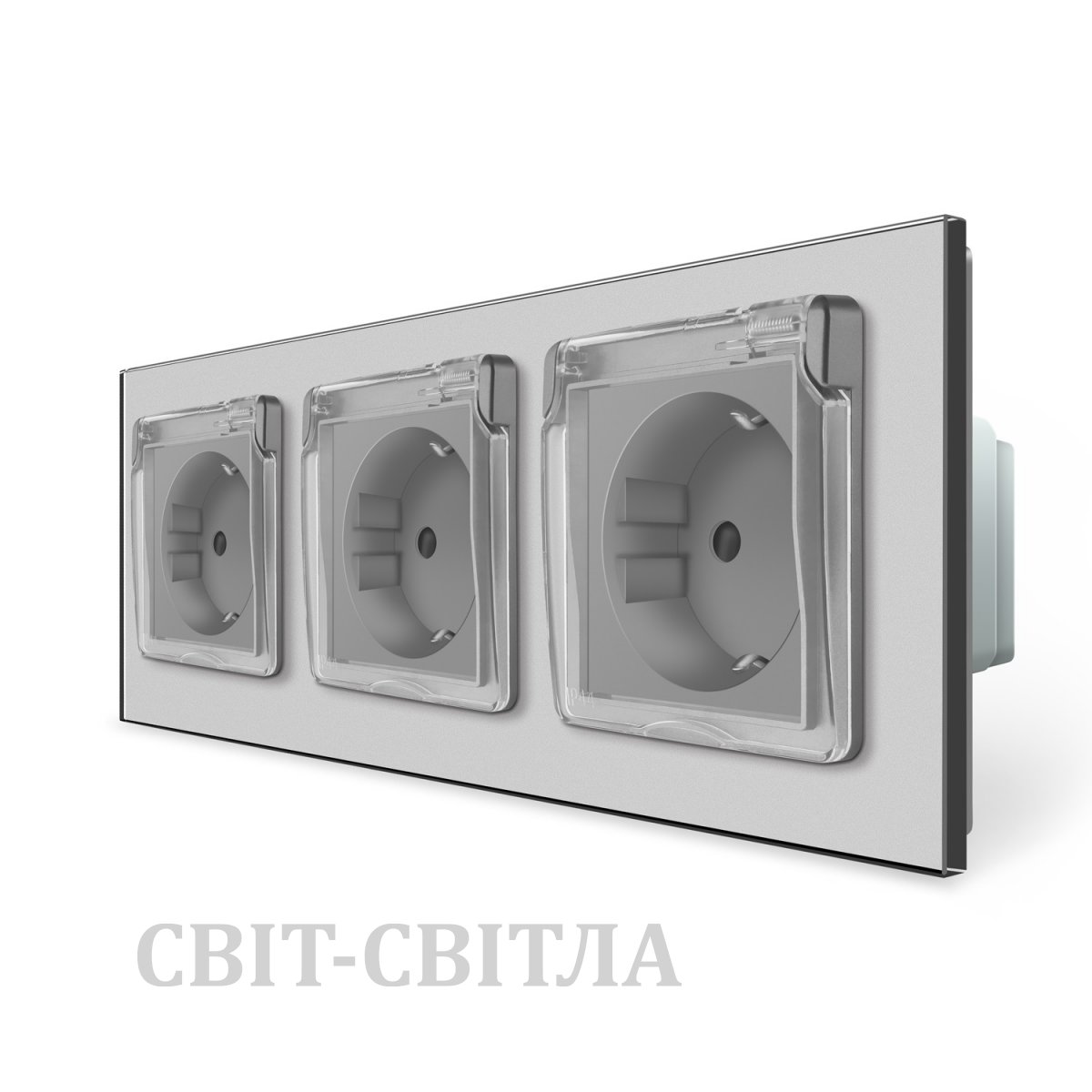 Розетка потрійна вологозахисна з кришкою Livolo сірий скло (VL-C7C3EUWF-15)