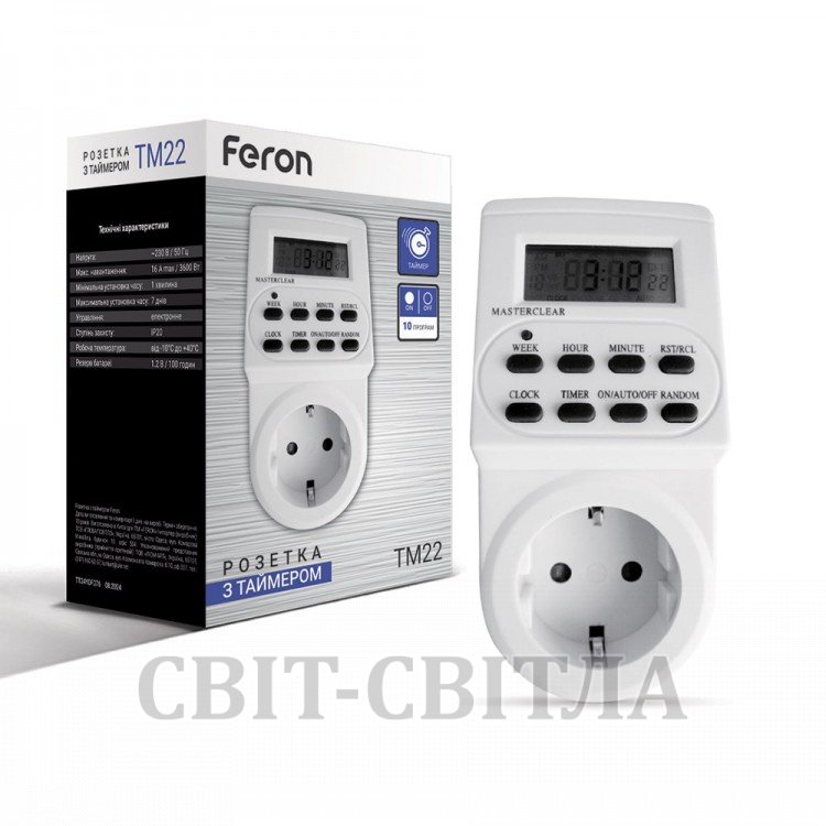 розетка с таймером Feron TM22/61925 3500W/16A (недельная)