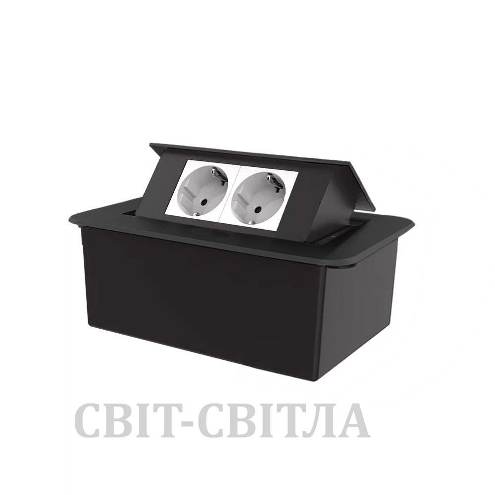 Мебельная розетка двойная с плавным открытием Livolo белые в черном (VL-SHS012-TCWP-B)