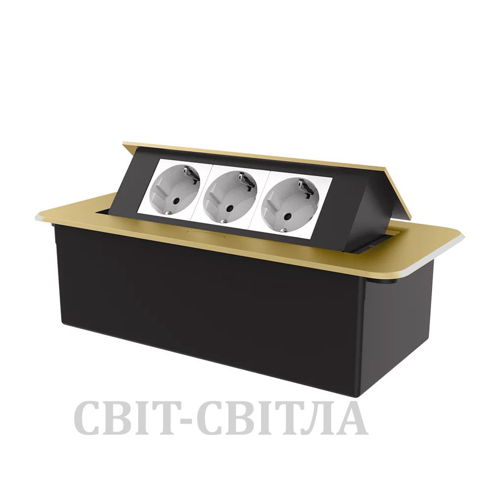 Мебельная розетка тройная с плавным открытием Livolo белые в золотому (VL-SHS013-TCWP-A)