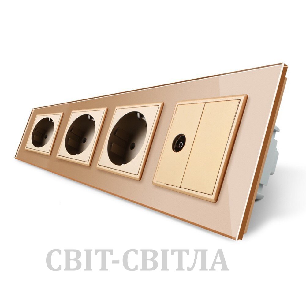 Розетка четырехместная комбинирована Силовая ТБ Livolo золото стекло (VL-C7C3EU1VK0-13)