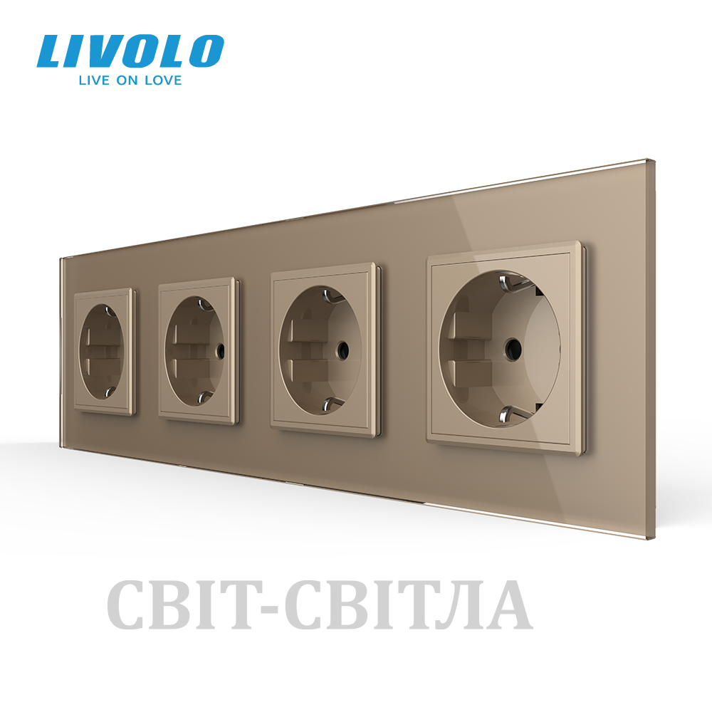 Розетка четырехместная с заземлением Livolo золото стекло (VL-C7C4EU-13)
