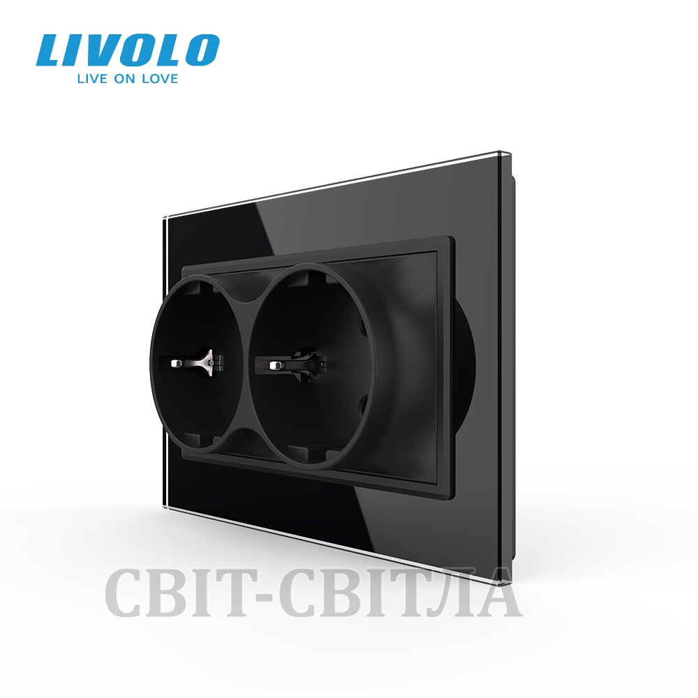 Розетка двойная с заземлением Livolo черный стекло (VL-C7CTF16A.TF16A-BP)