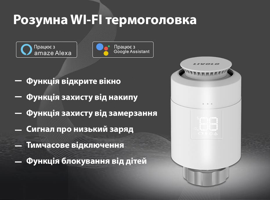 Беспроволочная термоголовка с LED дисплеем принадлежит к линейки умных решений Livolo Smart, которая работает по технологии Zigbee. С помощью заотношения LIVOLO HOME на телефоне, или голосом через ассистентов, таких как Google Home или Amazon Alexa, вы сможете контролировать температуру в помещении дистанционно из любого места и в любое время. Разные режимы работы и функция автоматического отключения при открытых окнах помогают экономить энергию и обеспечивать оптимальный комфорт.