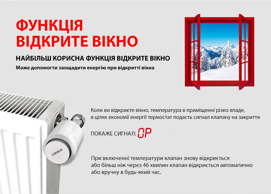 - Режим открытого окна: Если термостат Livolo выявляет окно открытое, то автоматически снижает температуру к 6 °C, чтобы обеспечить эффективную экономию энергии. После закрытия окна температура поворачивается к предыдущему уровню.