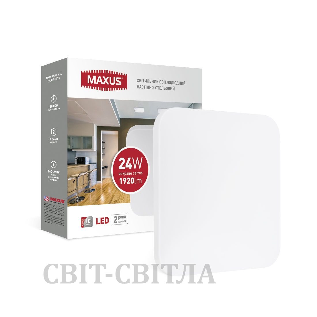 Светильник светодиодный настенно-потолочный Maxus Ceiling light 24W 4100K S (квадрат)