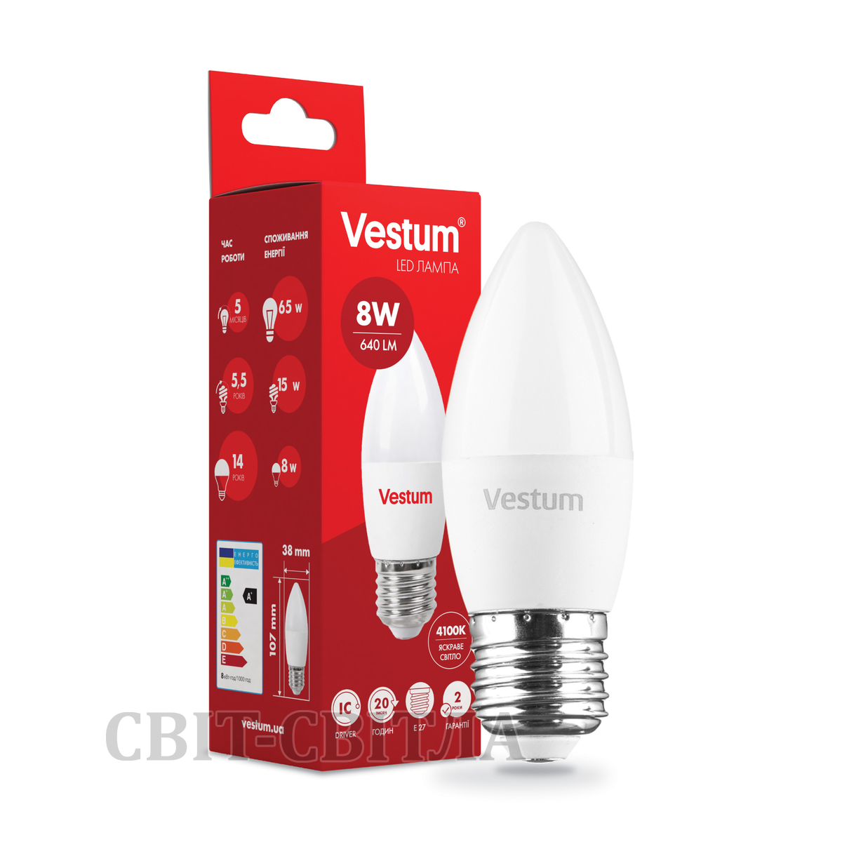 Светодиодная лампа Vestum C37 8W 4100K 220V E27 1-VS-1309