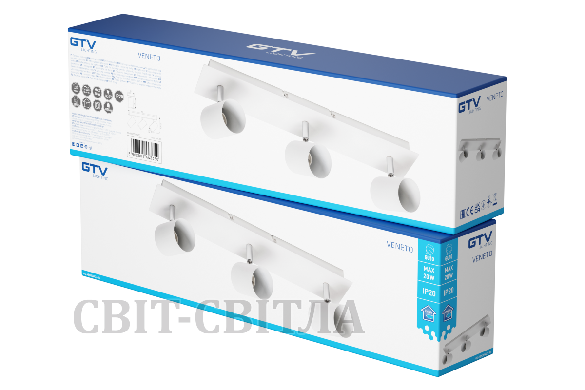 Світильник GTV VENETO, IP20, max.20W, 3xGU10, круглий, білий (OS-VEN20WO3-00)