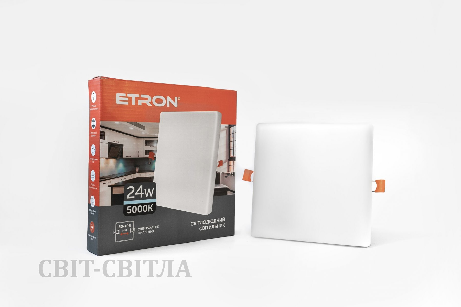 Світлодіодний врізний світильник Etron 24W 5000К ІР20 квадрат